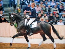 Zu richtigen Begeistungsstürmen liess sich Dr. Axel Brockmann vom Landgestüt Celle hinreissen, als er die Florestan-Tochter Ferrara kommentierte und sie an die Spitze der 3jährigen stellte. Mit Schwung und Elastizität in kaum zu überbietendem Maße präsentierte sich die Stute an der Hand von Vorführer Dieter Erdmann."Es sei eine Feude, dieser Stute beim "Dahinschweben" zuzuschauen", so Brockmann, und sagte ihr eine grosse Zukunft vorraus.
